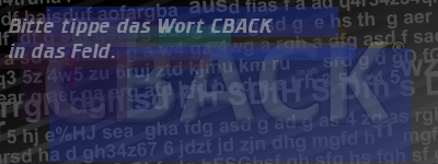 Die Visuelle Bestätigung hilft dabei automatische Spambots und Scripte von den Diensten dieses Forums abzuhalten. Derartige Scripte sind normalerweise nicht in der Lage den untenstehenden Code zu erkennen. Bitte geben Sie also in das untenstehende Feld die Buchstaben und Zahlen ein, die Sie in dem Bild erkennen können oder beantworten Sie die angezeigte Frage.